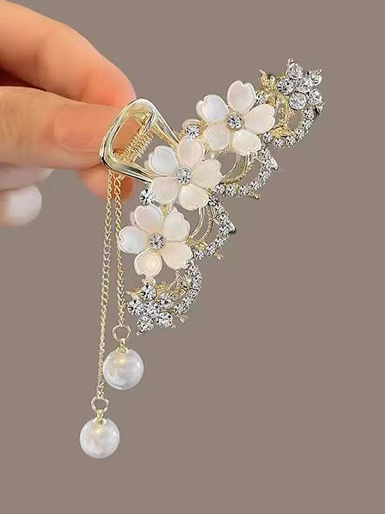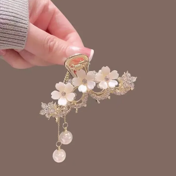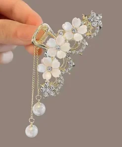 1PCS Fashion Crystal Flower Pearl Tassel Hair Claw – Luxury Floral Design