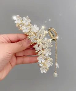 Flower Hair Claw Clips – Gold Color Alloy Hairpin Ponytail Holder