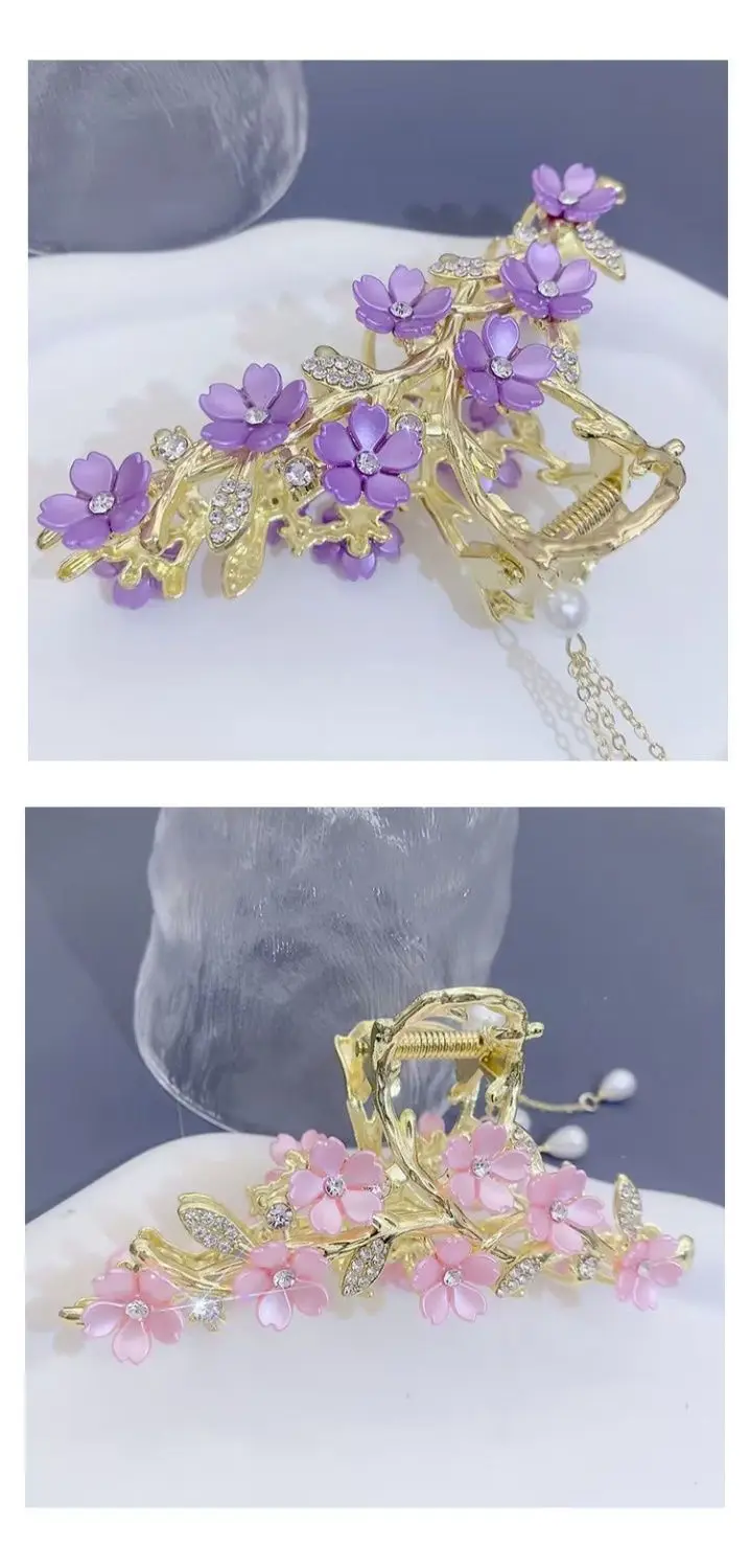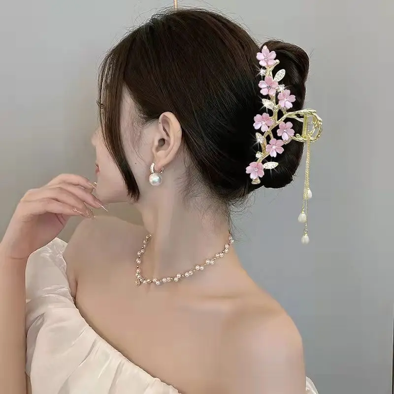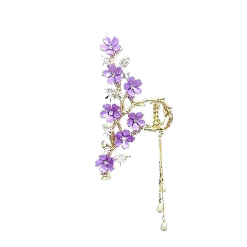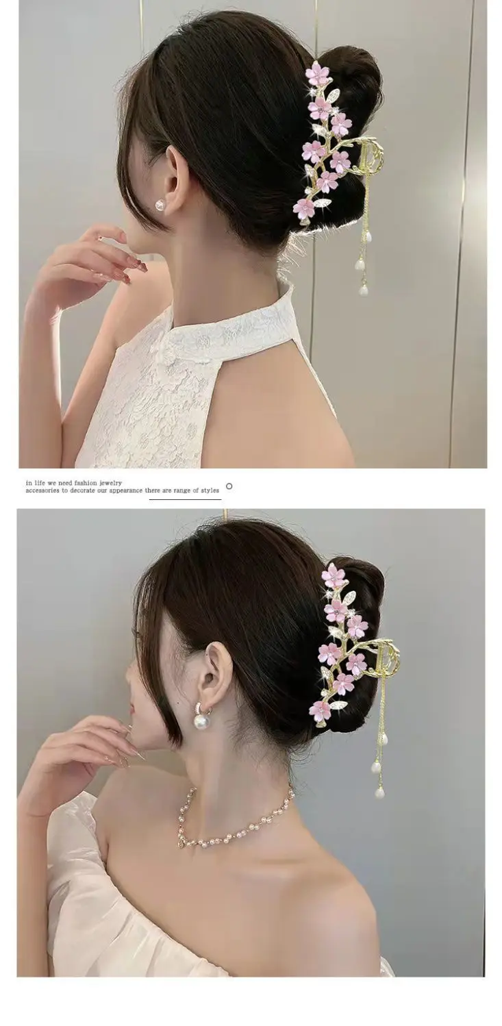 Flower Tassels Hair Claw for Women – Elegant Floral Shark Clip