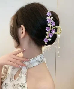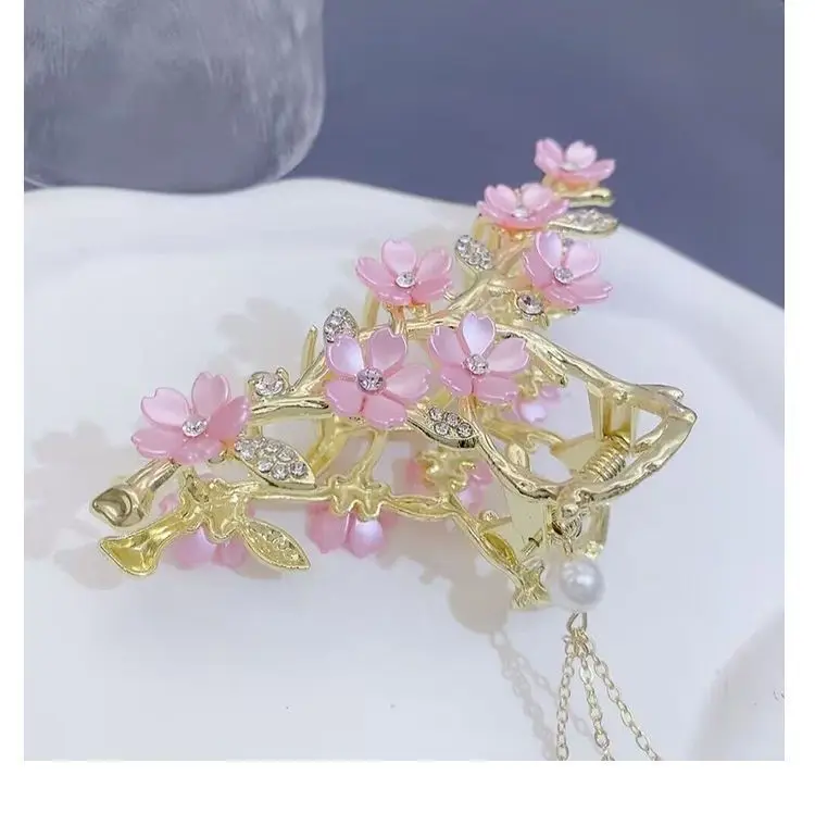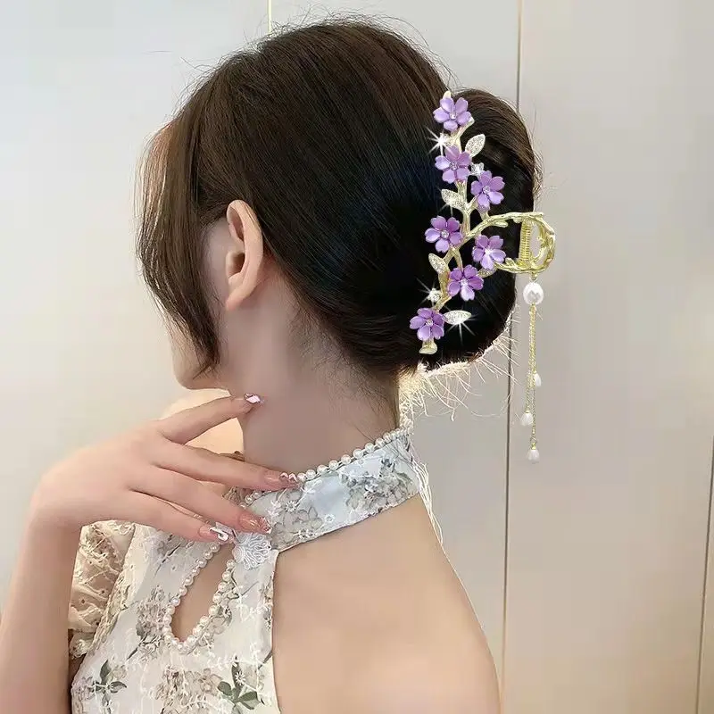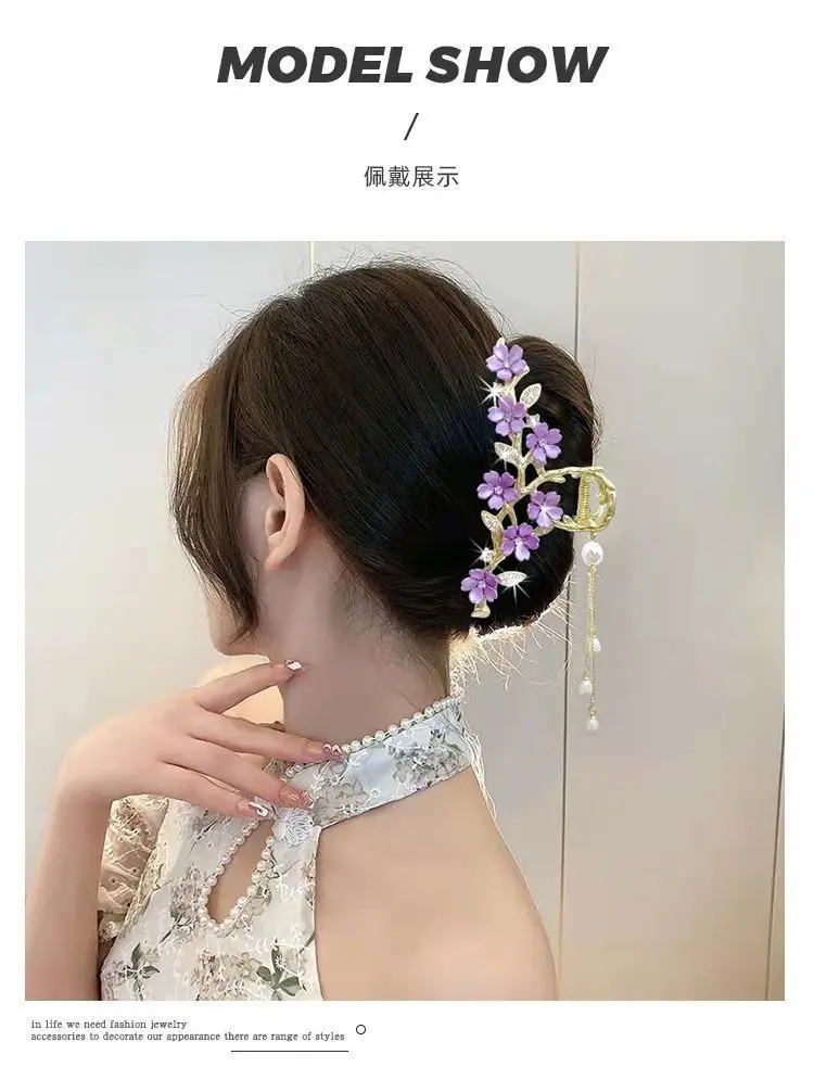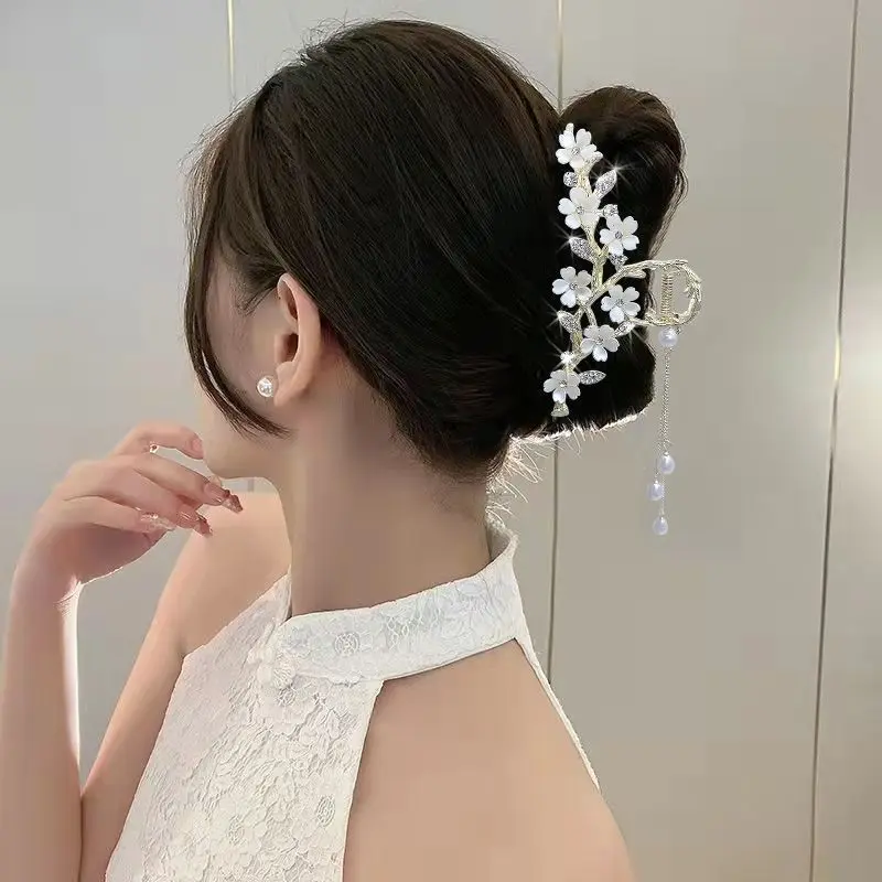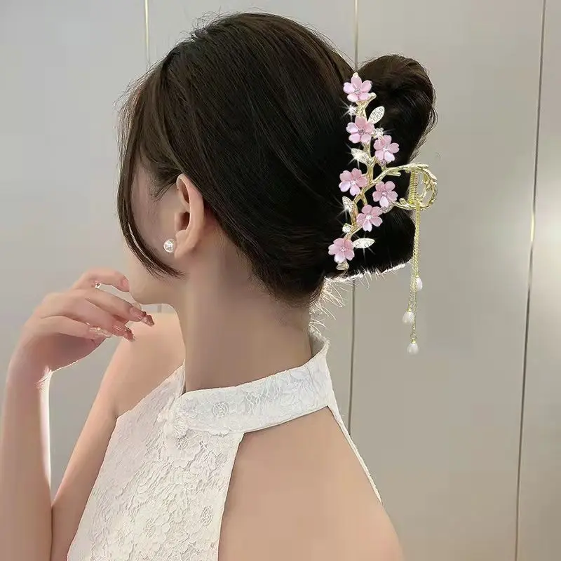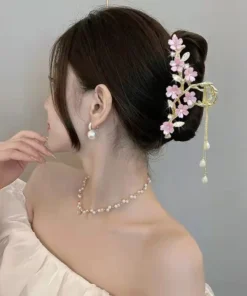 Flower Tassels Hair Claw for Women – Elegant Floral Shark Clip