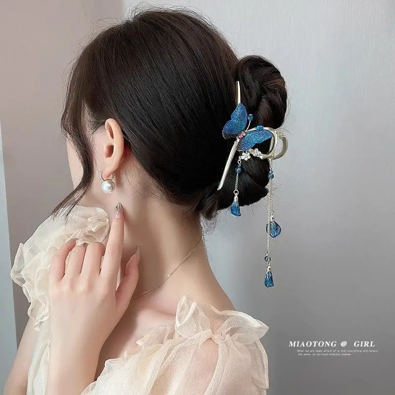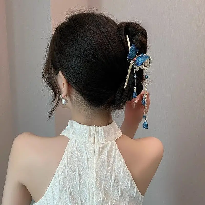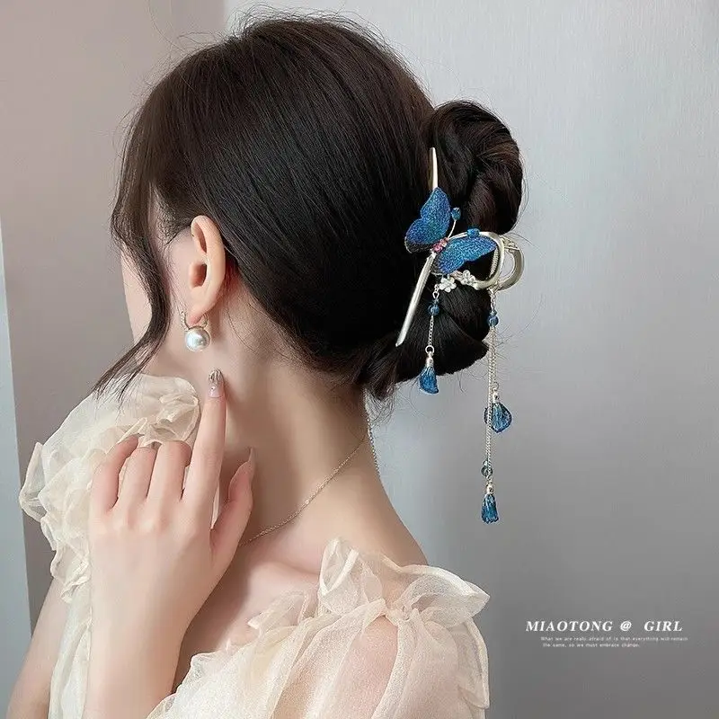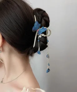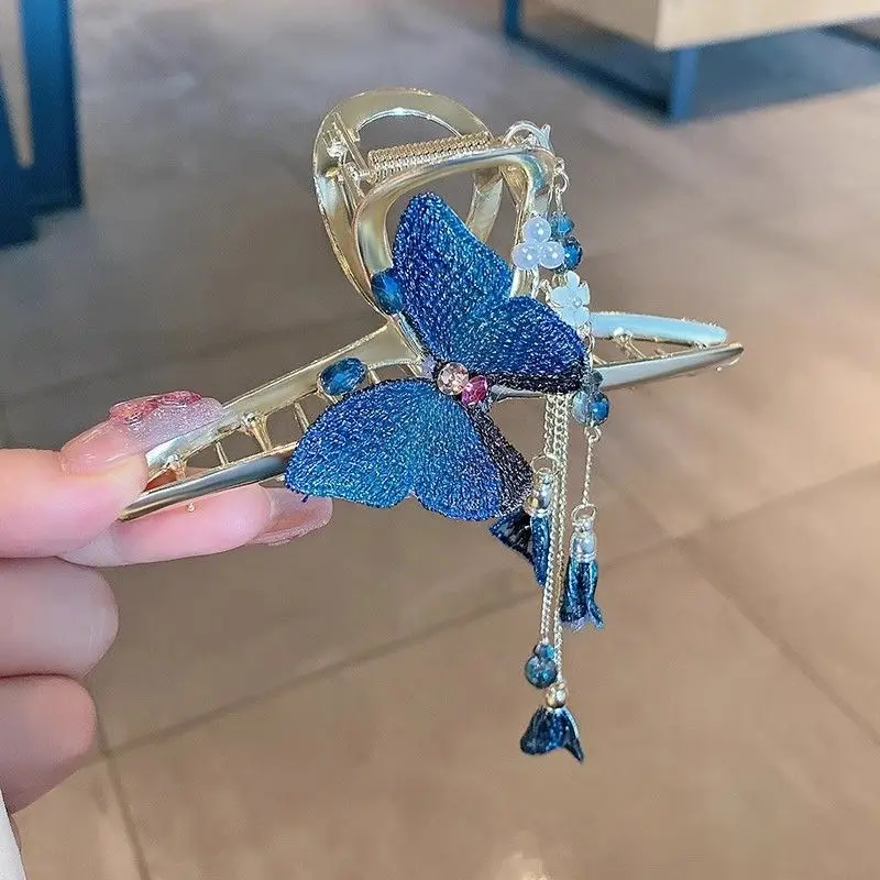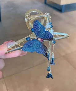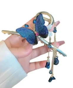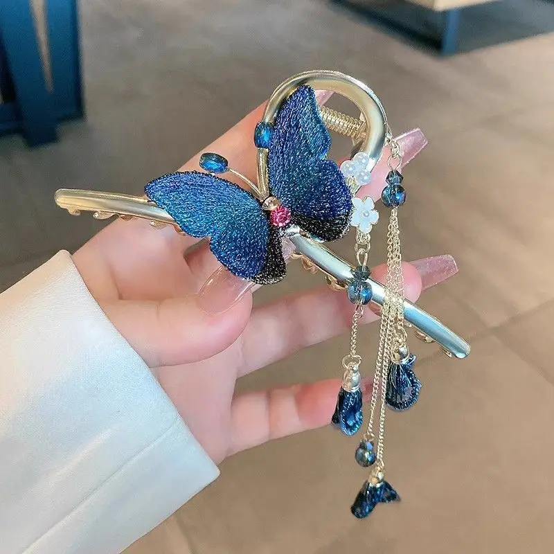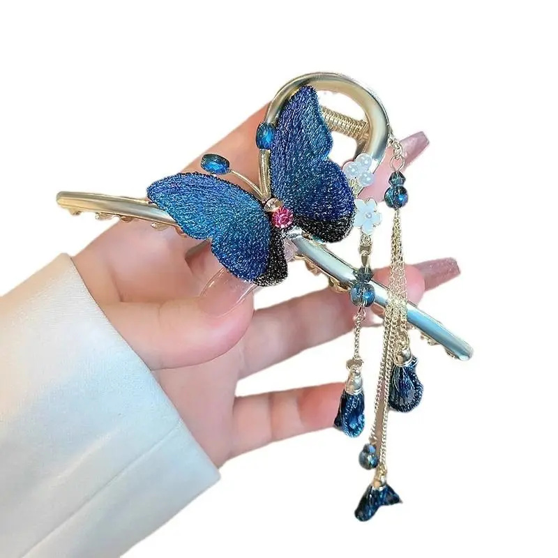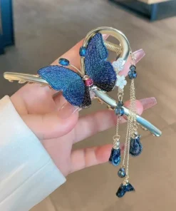 Tassel Blue Butterfly Fashion Hairpin for Women – Large Elegant Hair Clip